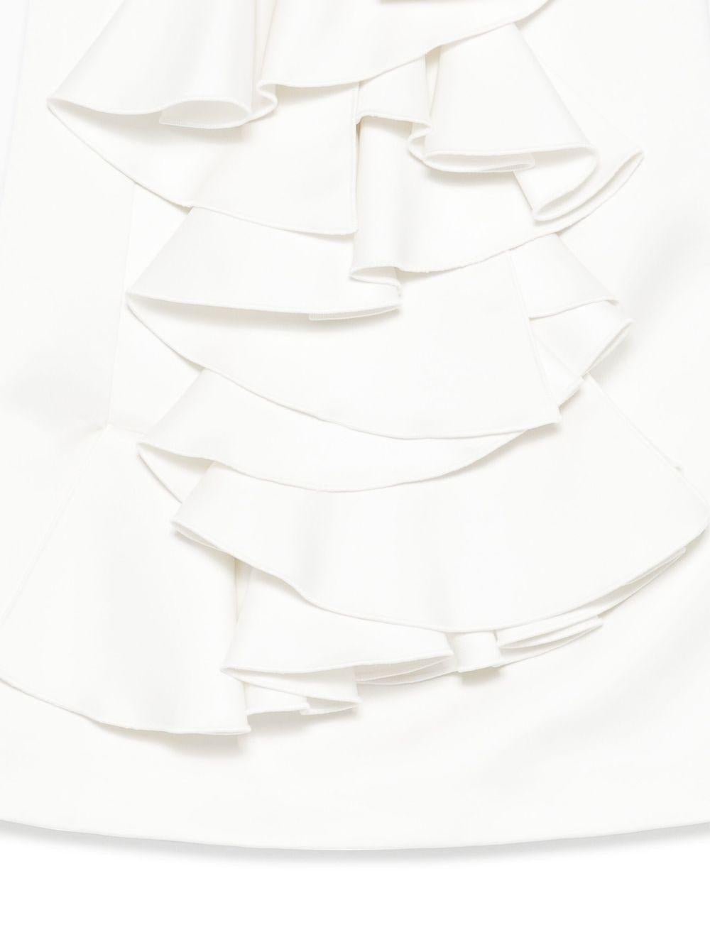 The Elisabetta Franchi La Mia Bambina white satin dress for girls is available on the RubinoKids.com online store. Made of 100% polyester and 100% polyamide, it features a white color, a hidden back zip closure, a logo charm, a crew neck, and ruffled details. Available in various sizes, it is part of the Elisabetta Franchi La Mia Bambina Spring/Summer 2025 collection and is available for immediate shipment with delivery within 24-48 hours in Italy.