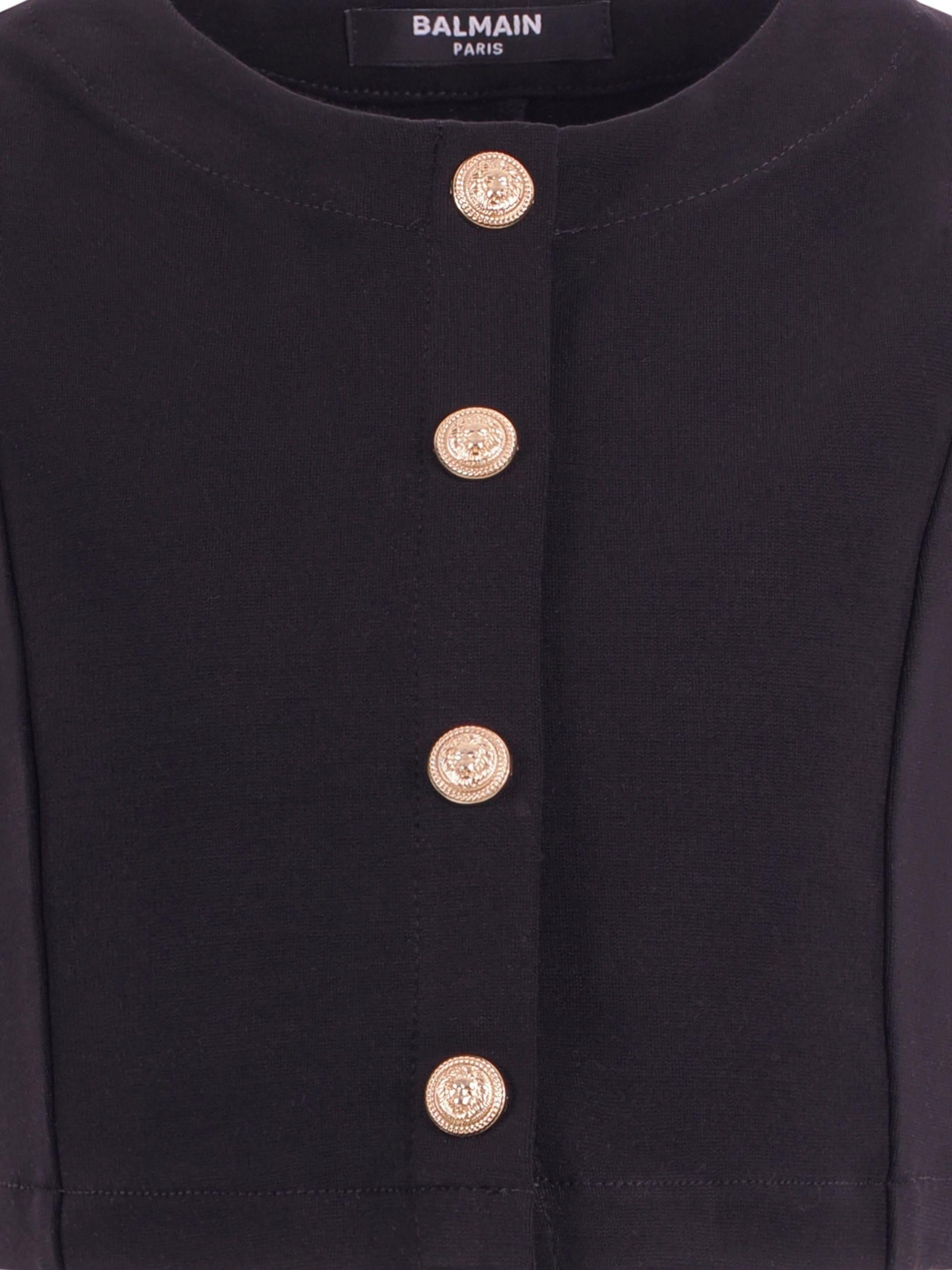 The Balmain Kids black waistcoat for girls with gold buttons on the front is available on the RubinoKids.com online store. Made of 100% cotton, it is black, features gold buttons on the front, is sleeveless, and has a round neckline. Available in various sizes, it is part of the Balmain Kids Spring/Summer 2026 collection and is available for 24-48 hour delivery in Italy.