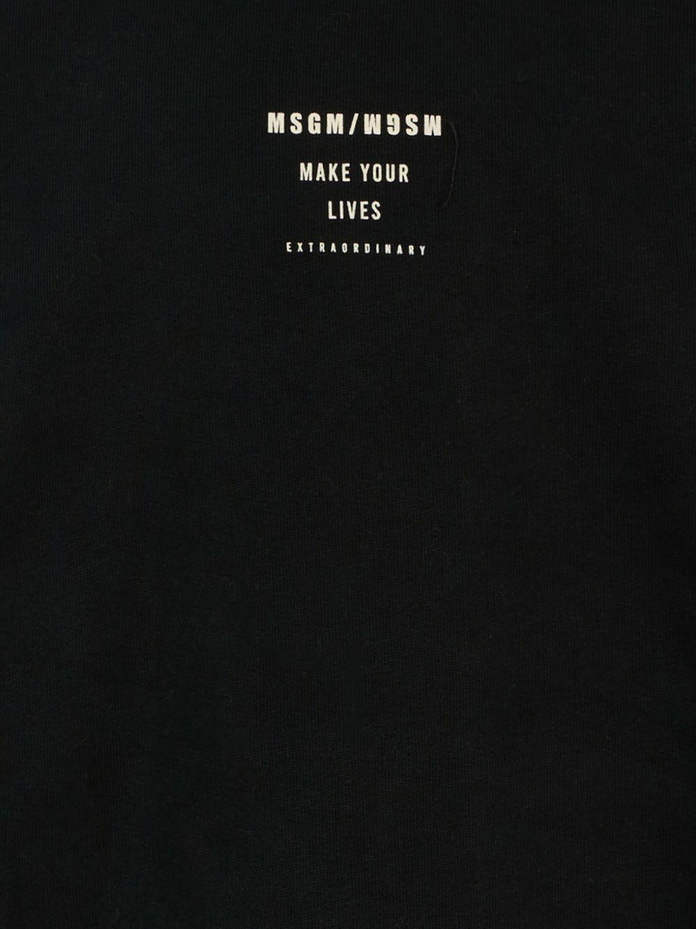 The MSGM Kids black sweatshirt with logo print is available on the RubinoKids.com online store. Made of 100% cotton, it features a black color, crew neck, long sleeves, and ribbed cuffs and hem. Available in various sizes, it is part of the MSGM Kids Fall/Winter 2025 collection and is available for immediate shipment with delivery within 24-48 hours in Italy.