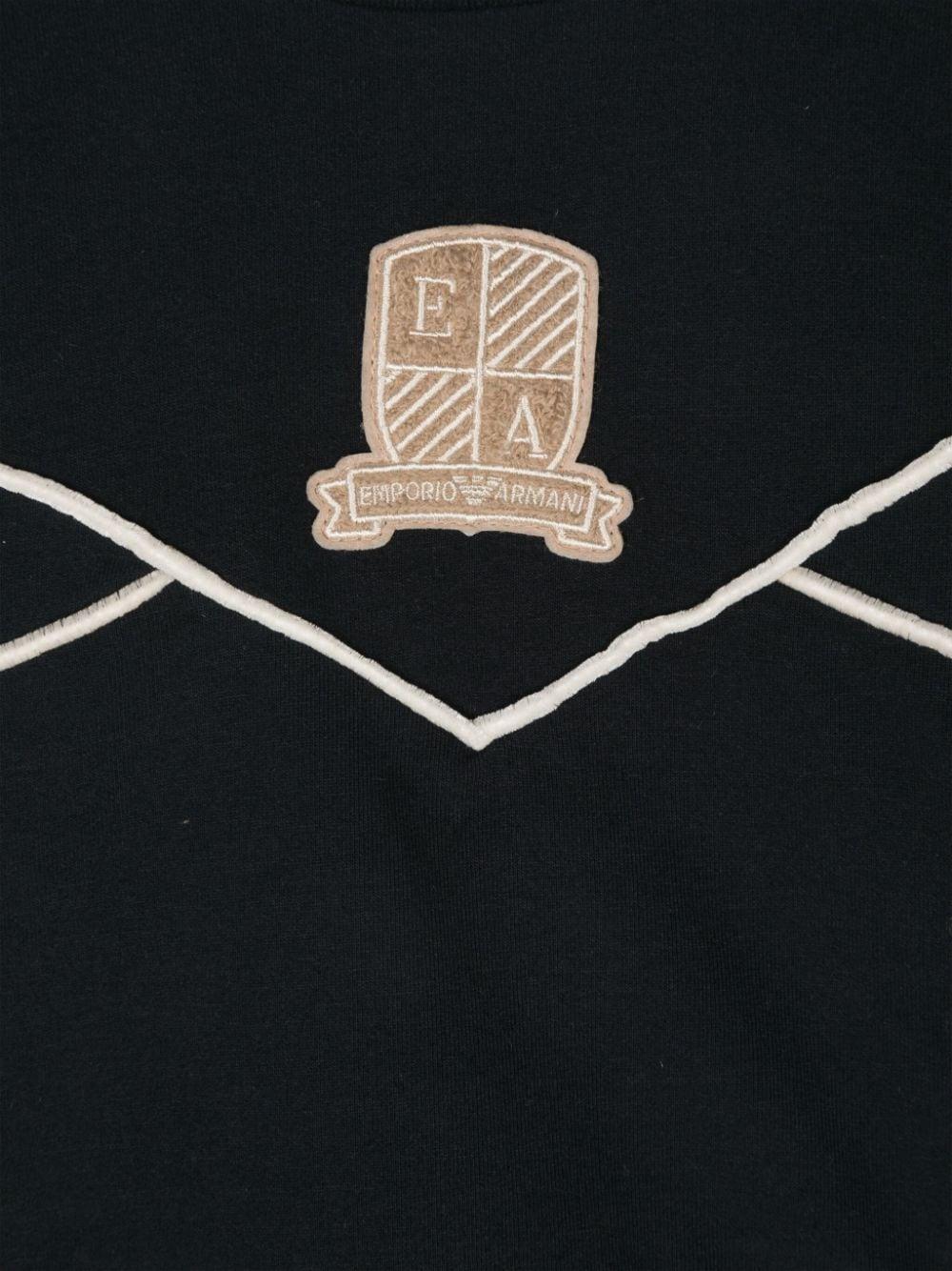 Emporio Armani Kids blue baby sweatshirt with logo patch and striped edge