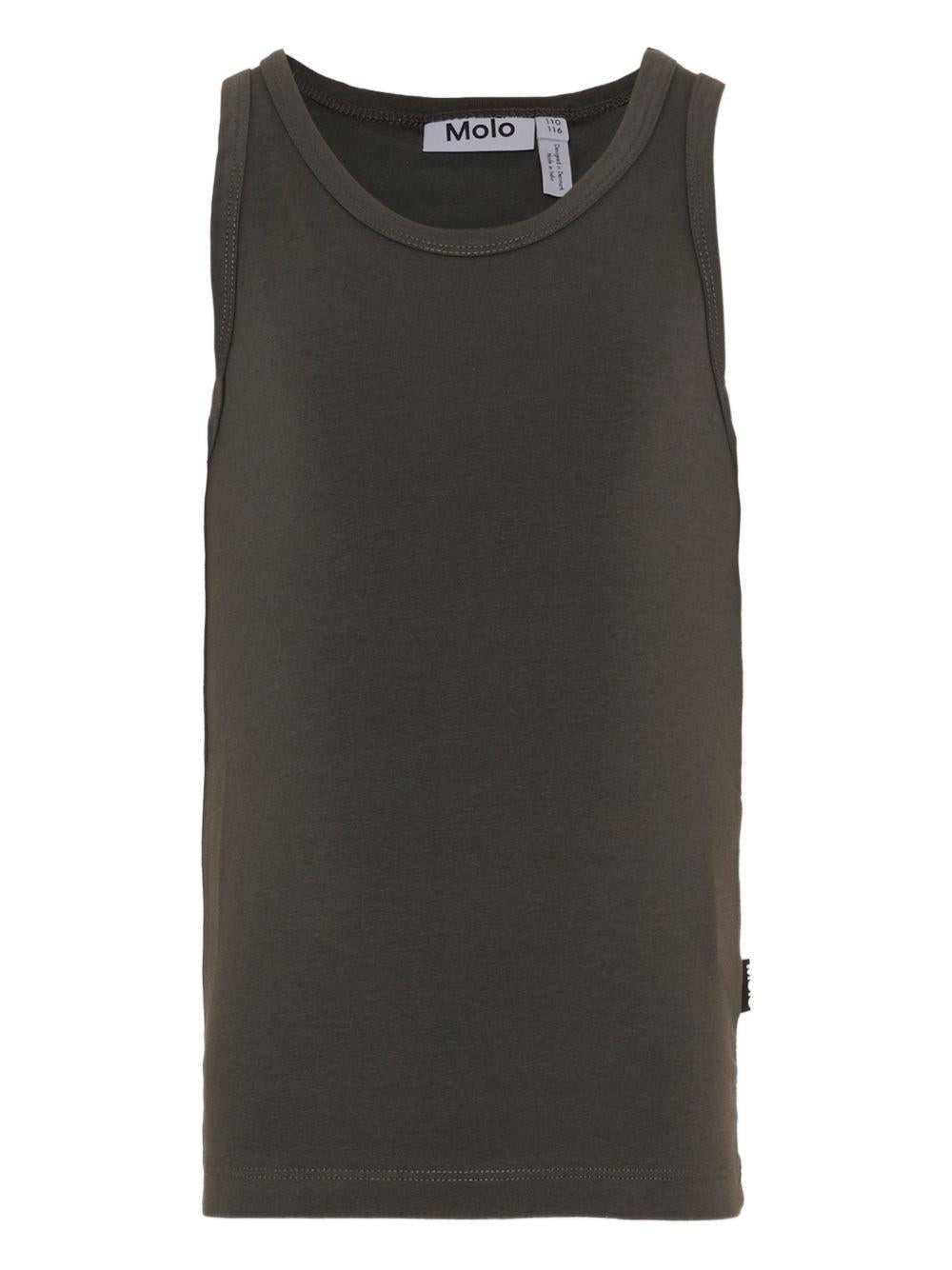The Molo multicolored boys' tank top set with different patterns is available on the RubinoKids.com online store. Made from 95% cotton and 5% elastane, it features a beige/black color scheme, a variety of patterns, a sleeveless design, and a basketball print. Available in various sizes, it is part of the Molo Spring/Summer 2026 collection and is available for 24-48 hour delivery in Italy.