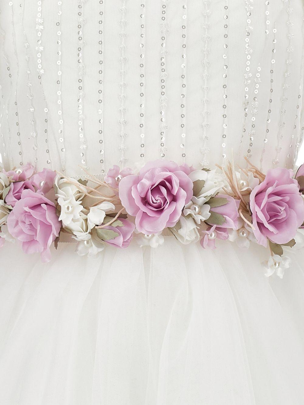 Monnalisa white dress for girls with floral applique