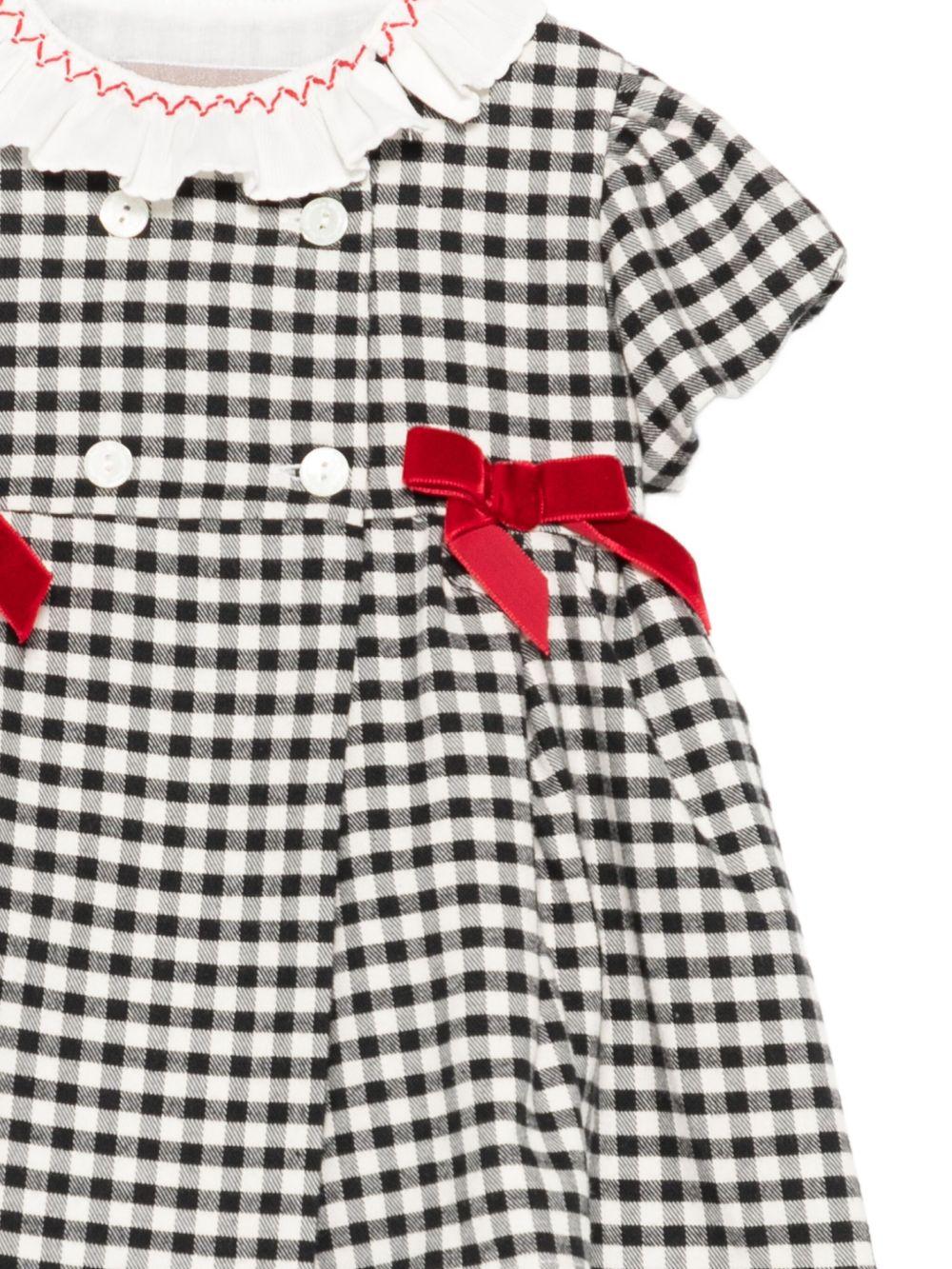 Checked pattern, short sleeves, Peter Pan collar, red ribbon, button-up front belt. Available in various sizes, it's part of the La Stupenderia Fall/Winter 2025 collection and is available for 24-48 hour delivery in Italy.