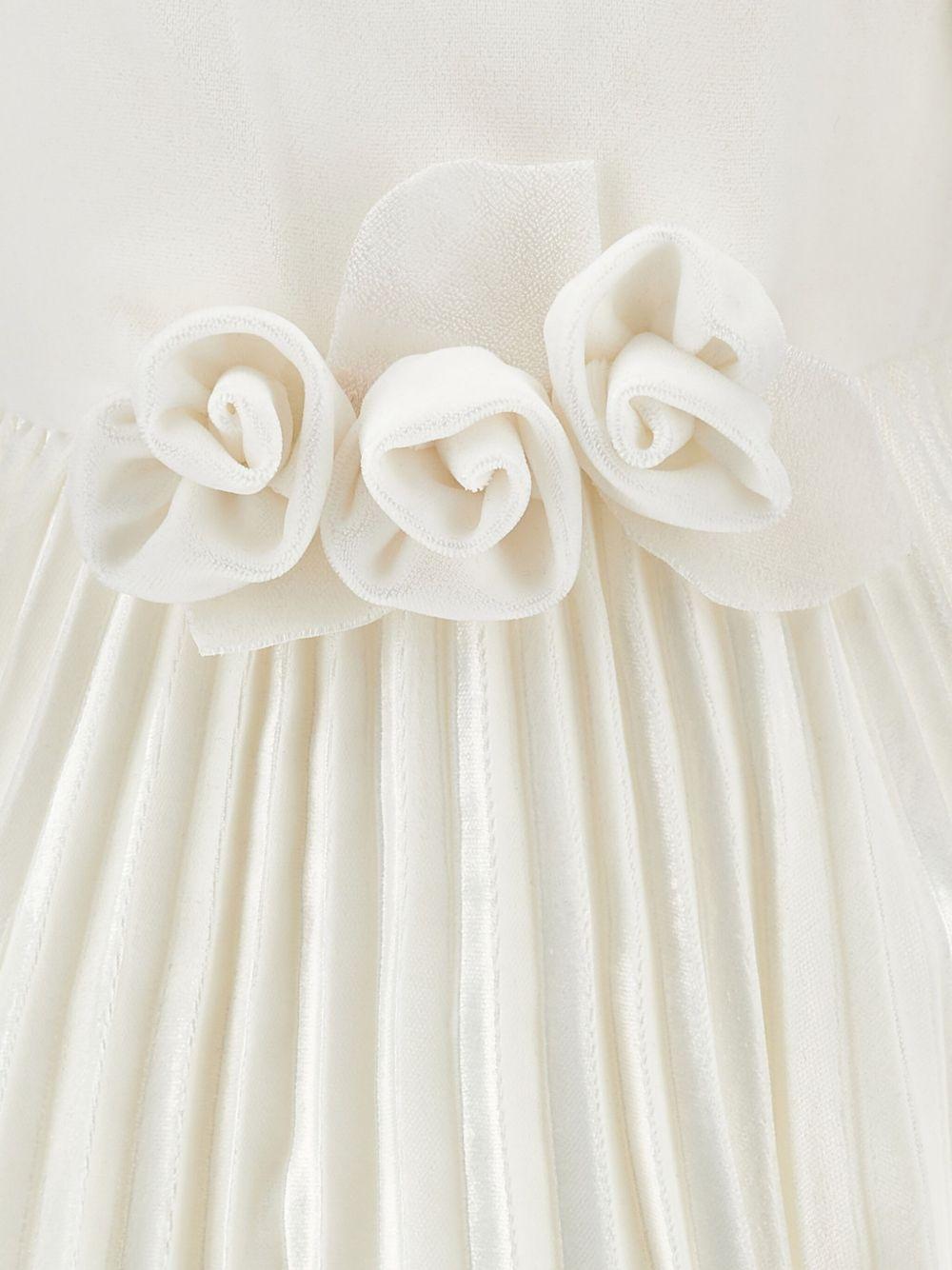 The Monnalisa white baby girl dress with pleated collar is available on the RubinoKids.com online store. Made of 100% polyester, it features a white color, a pleated skirt, a round collar, tone-on-tone pink embellishments, short sleeves, and a back zip closure. Available in various sizes, it is part of the Monnalisa Fall/Winter 2025 collection and is available for 24-48 hour delivery in Italy.