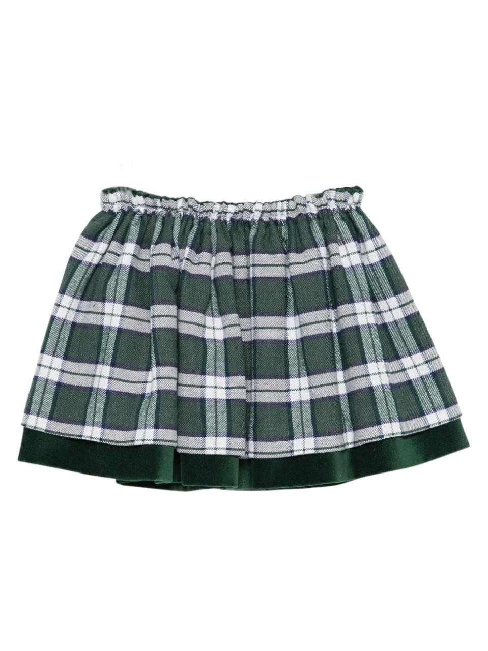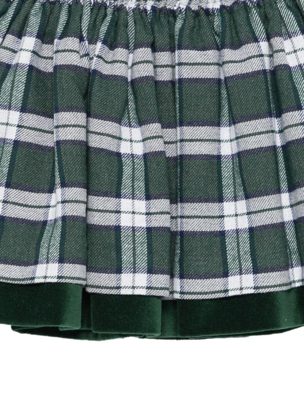 The Mariella Ferrari green plaid skirt for baby girls is available on the RubinoKids.com online store. Made of 100% cotton, it features a green color, a plaid pattern, trim details, and an elastic waistband. Available in various sizes, it is part of the Mariella Ferrari Fall/Winter 2025 collection and is available for 24-48 hour delivery in Italy.
