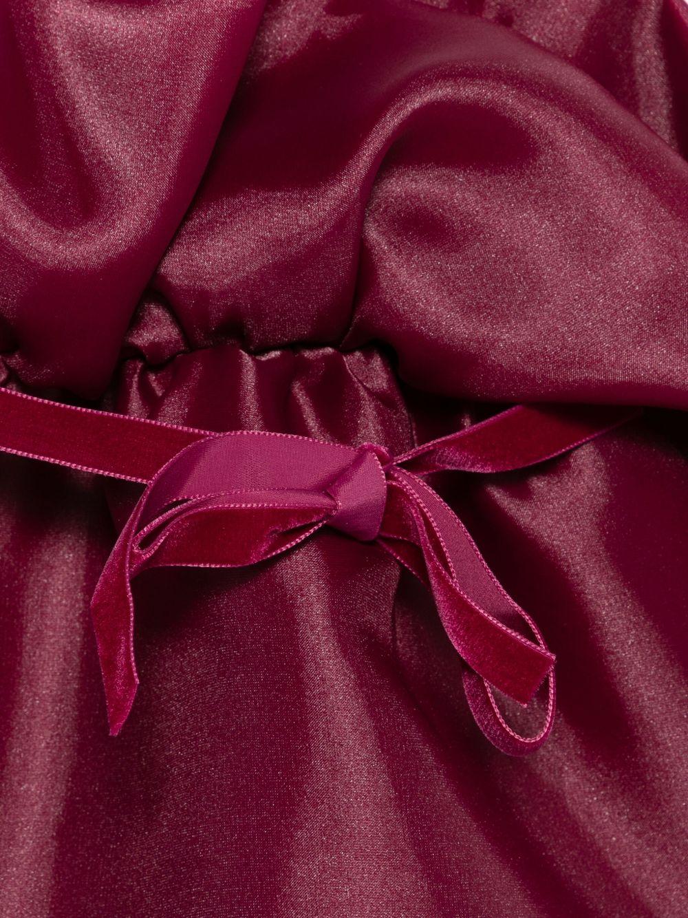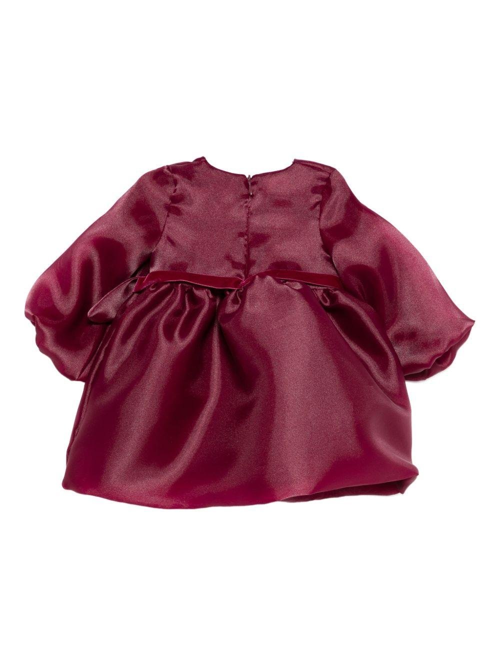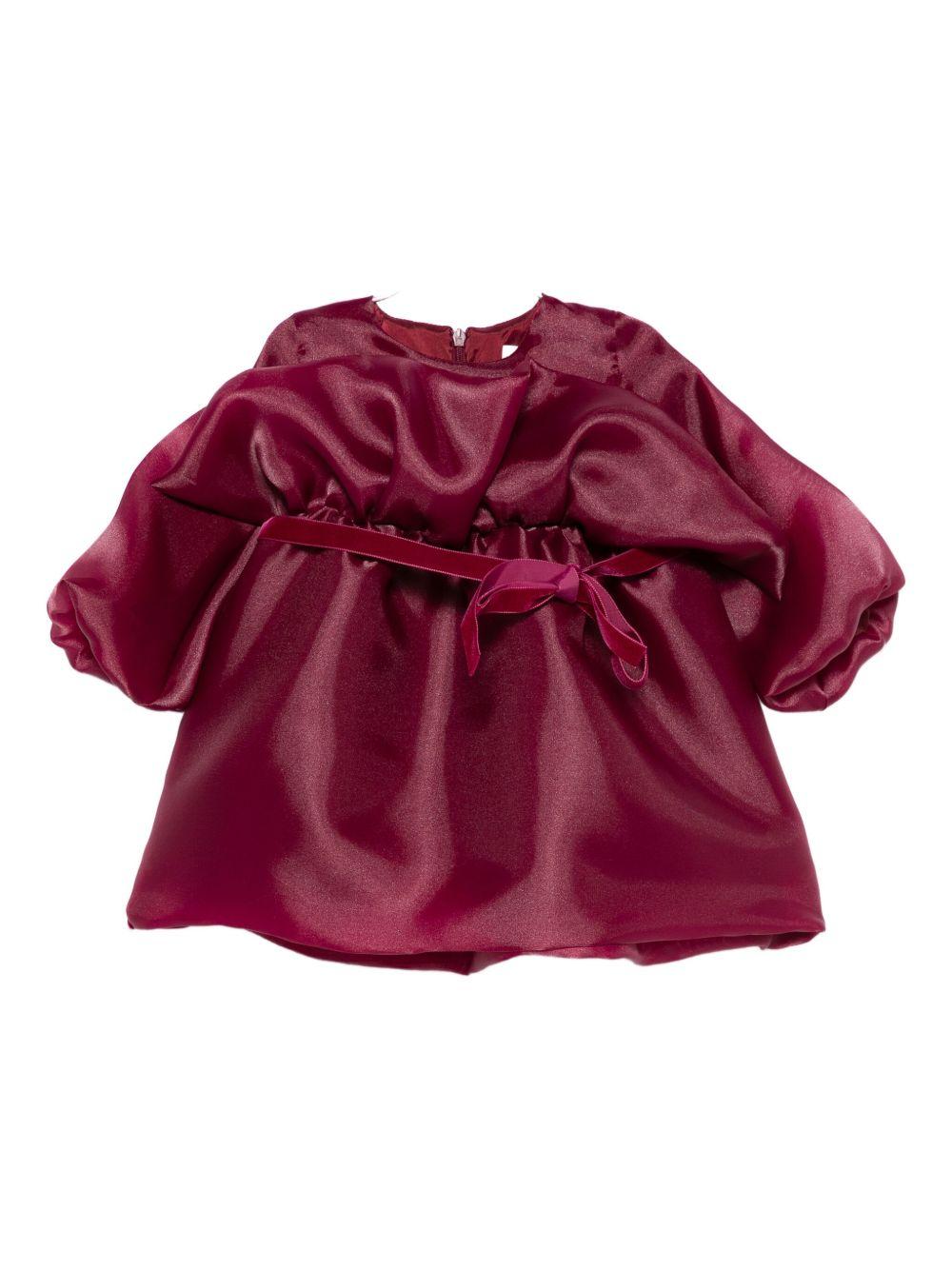 The A'lapage red baby girl dress with puff sleeves is available on the RubinoKids.com online store. Made of 100% fabric, it features red, puff sleeves, a drawstring detail, a round neckline, and a back zip closure. Available in various sizes, it is part of the A'lapage Fall/Winter 2025 collection and is available for 24-48 hour delivery in Italy.