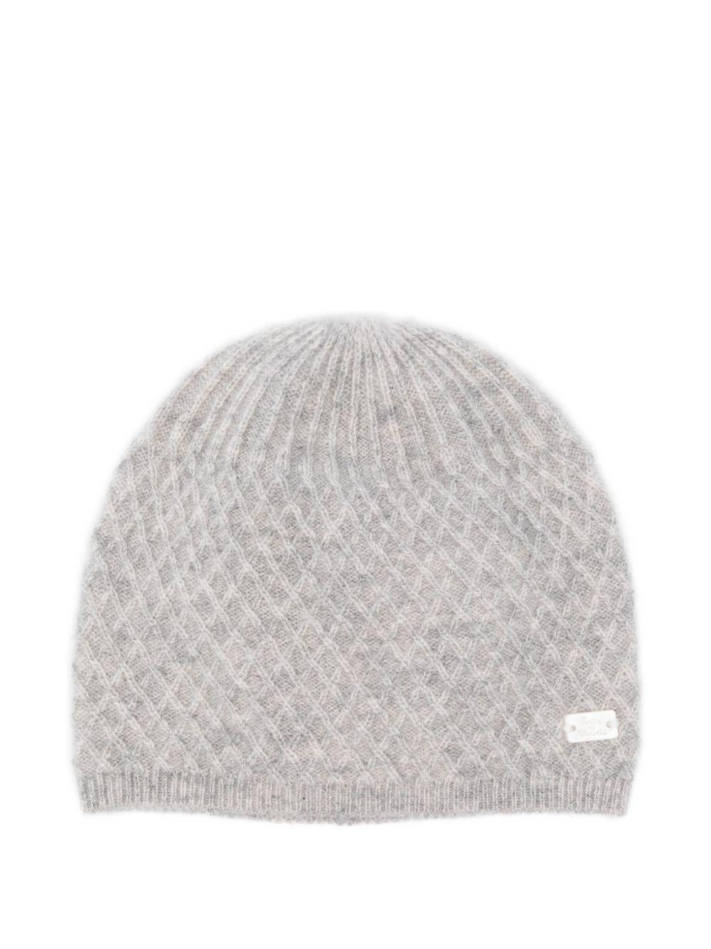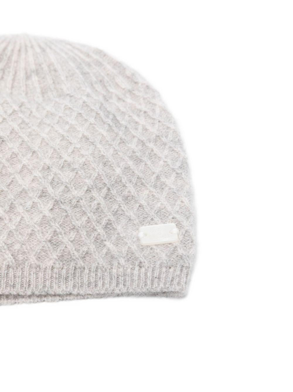 The Tartine Et Chocolat baby hat in grey with a diamond pattern is available on the RubinoKids.com online store. Made of 100% cashmere, the product is grey in colour.