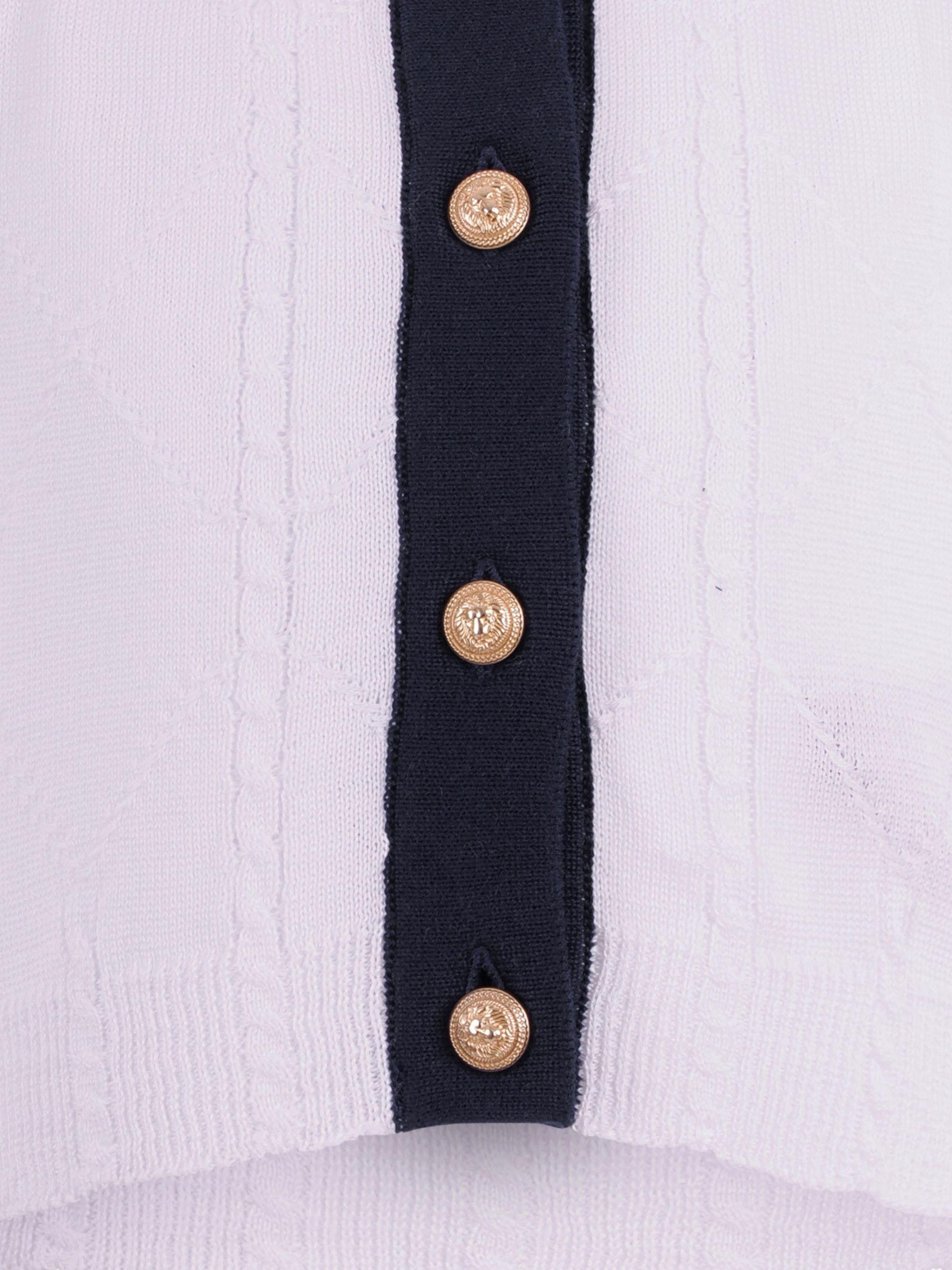 The Balmain Kids black and white tank top for girls with gold button details is available on the RubinoKids.com online store. Made of 100% cotton, it features a black and white color scheme, gold button details, a ribbed hem, a knit design, a crew neck, and sleeveless styling. Available in various sizes, it is part of the Balmain Kids Spring/Summer 2026 collection and is available for 24-48 hour delivery in Italy.