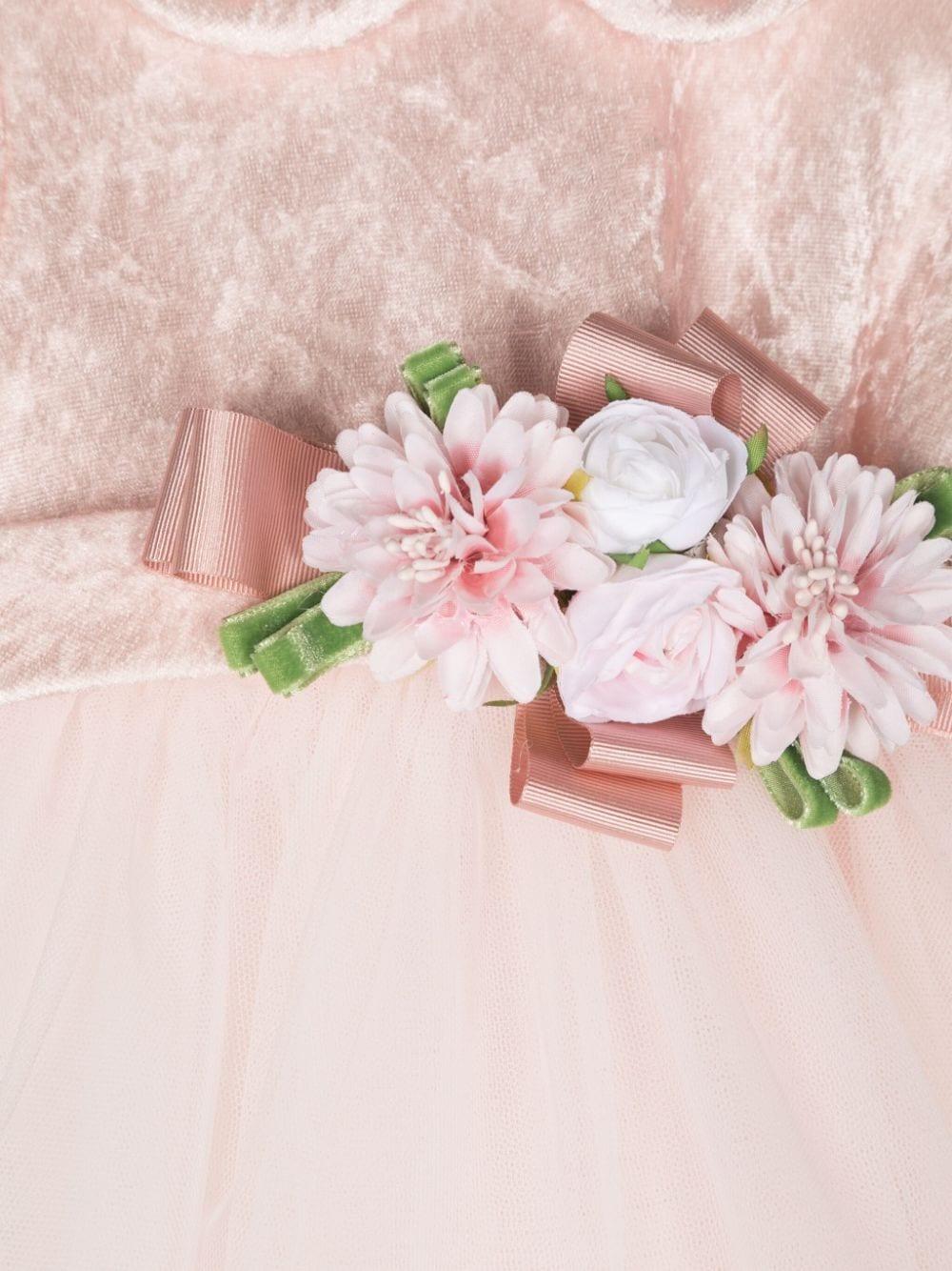The Colorichiari pink baby girl dress with floral applique is available on the RubinoKids.com online store. Made of 100% polyester, it features a hidden back zip closure, velvet trim, a round collar, short puff sleeves, a removable belt with floral applique, a tulle insert, a full skirt, and a fully lined interior. This size is part of the Colorichiari Fall/Winter 2024 collection and is available for immediate shipment with delivery within 24-48 hours in Italy.