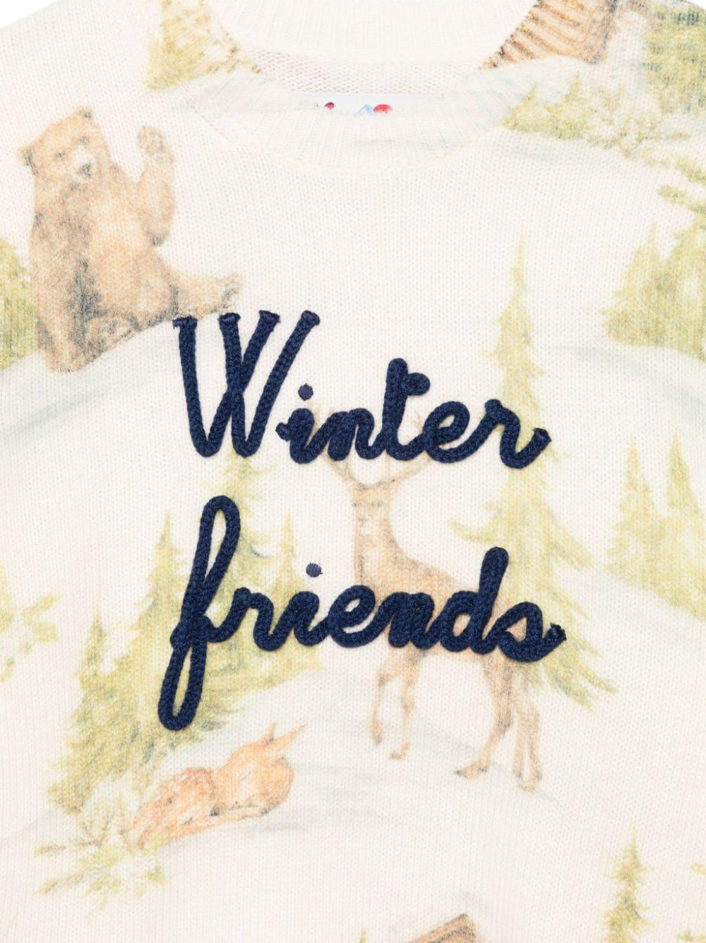 The MC2 Saint Barth Kids beige Douglas pullover for boys with a round neck is available on the RubinoKids.com online store. Made from 40% wool, 25% viscose, 25% nylon, and 10% cashmere. The product features a light beige/multicolor knitted construction, an all-over graphic print, a round neck, embroidered text on the front, long sleeves, an embroidered logo on the sleeve, ribbed cuffs and hem, and a straight hem. This size is part of the MC2 Saint Barth Kids Fall/Winter 2024 collection and is available for immediate shipment with delivery within 24/48 hours in Italy.