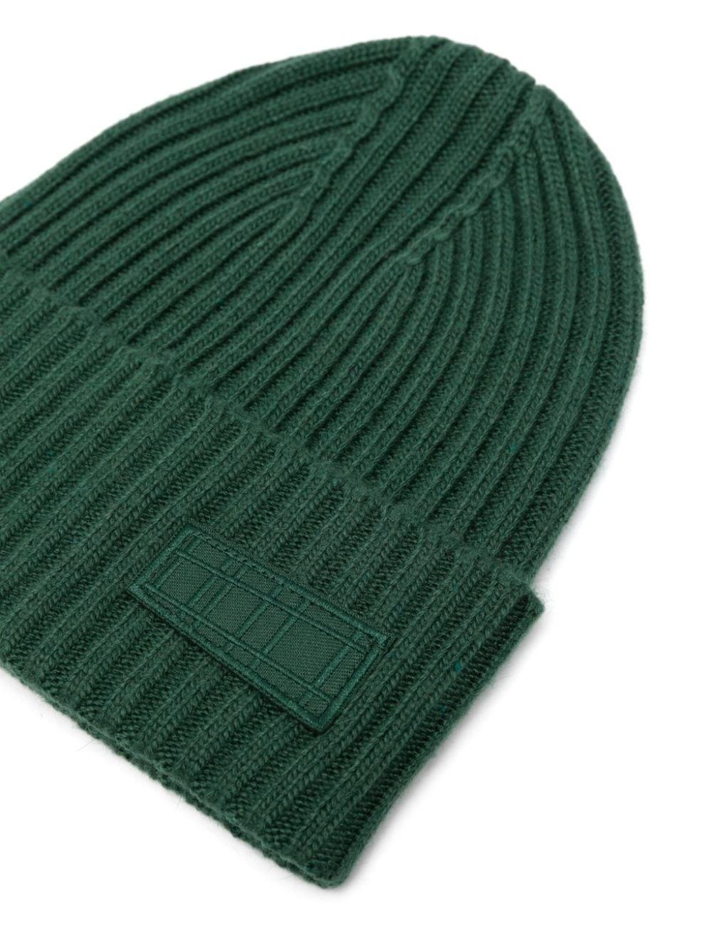 The Karli Molo green wide-brimmed hat for boys with a pleated edge is available on the RubinoKids.com online store. Made from 55% viscose, 25% nylon, 15% polyester, and 5% cashmere, the hat is forest green.