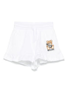 Moschino Kids white Leo Teddy print shorts for girls with two side pockets