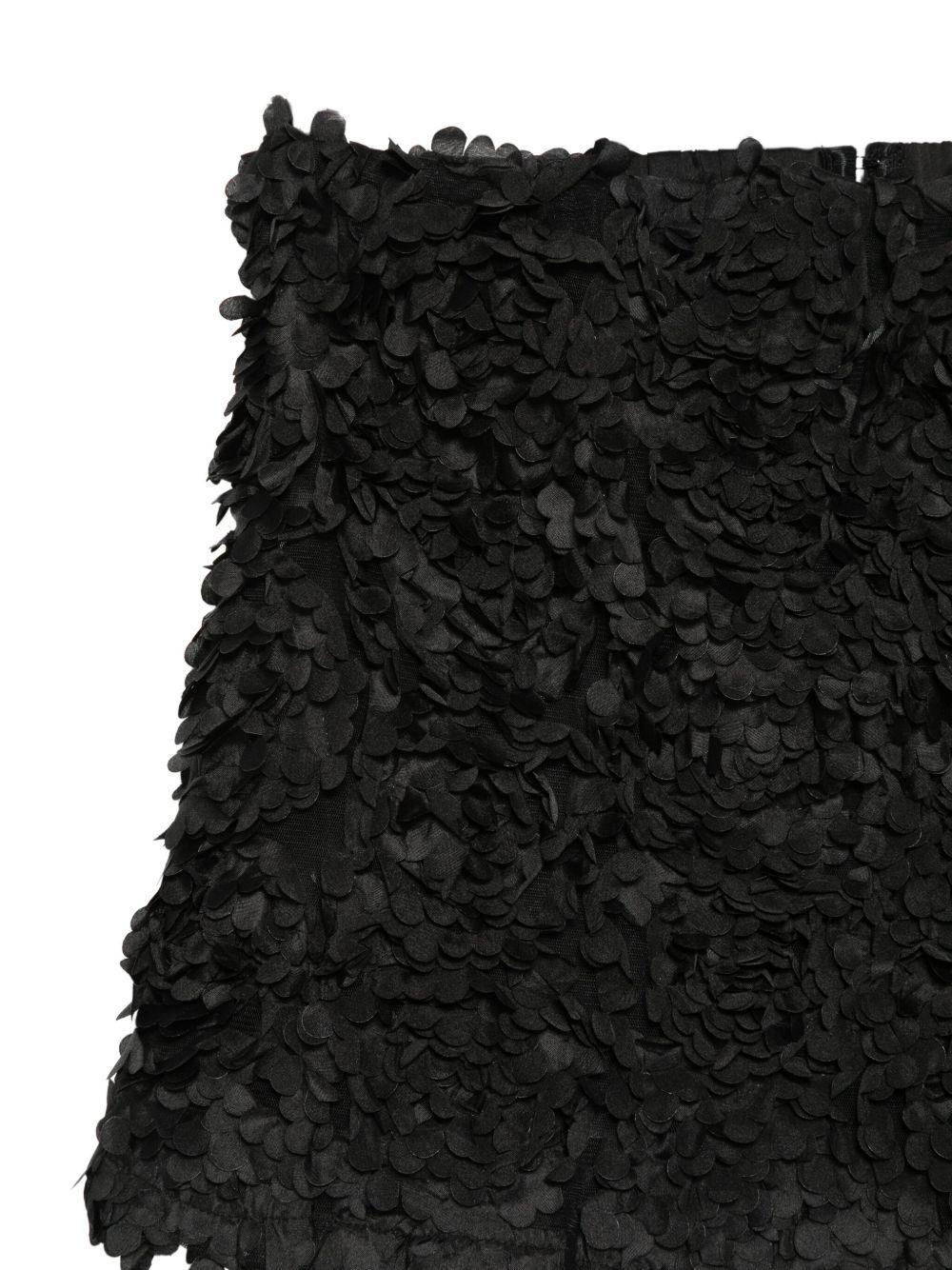 The Merci women's black top with ruffled design is available on the RubinoKids.com online store. Made of 100% polyester, it features a black color, ruffles, a flared design, and a hidden back closure. Available in various sizes, it is part of the Merci Fall/Winter 2025 collection and is available for 24-48 hour delivery in Italy.