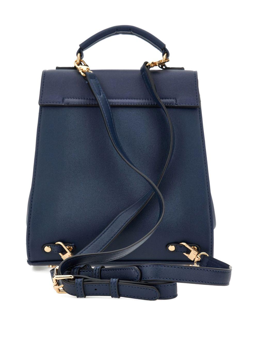 The Monnalisa x Disney blue backpack for girls with Mickey Mouse print is available on the RubinoKids.com online store. Made of 100% calfskin, it features a navy blue color, a fold-over front, a Mickey and Minnie Mouse print, a heart motif, a handle, and adjustable shoulder straps. It is part of the Monnalisa Fall/Winter 2025 collection and is available for delivery in Italy within 24/48 hours.