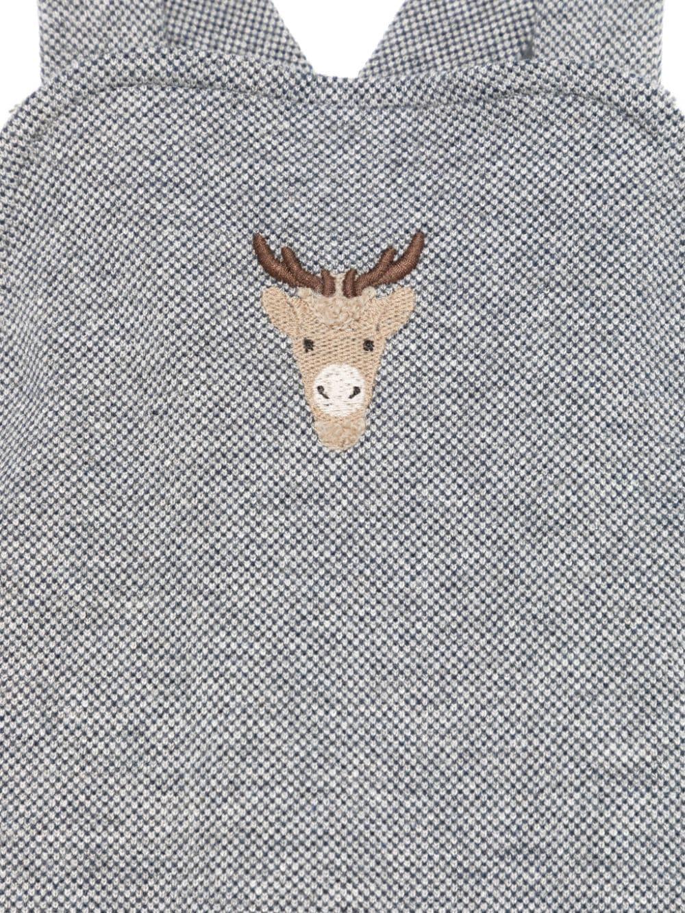 Il prodotto Salopette per neonato Donsje Mosie blu con finitura testurizzata è disponibile sullo store online RubinoKids.com. Realizzato in Cotone 100%. La salopette presenta un colore blu acciaio, finitura testurizzata, chiusura con bottone automatico, scollo quadrato, spalline regolabili, motivo ricamato, senza maniche, elastico in vita, cavallo basso, gamba affusolata. Varie taglie a catalogo, appartiene alla collezione Donsje Autunno/Inverno 2024 ed è disponibile in pronta spedizione con consegna in 24/48h per l'Italia.