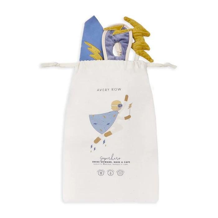 Il prodotto Set da travestimento per bambino Avery Row azzurro con mascherina, mantello e bacchetta è disponibile sullo store online RubinoKids.com. Realizzato in cotone 100%. Il prodotto presenta un colore azzurro, set di tre, decorazione fulmini. Varie taglie a catalogo, appartiene alla collezione Avery Row Autunno/Inverno 2025 ed è disponibile in pronta spedizione con consegna in 24/48h per l'Italia.