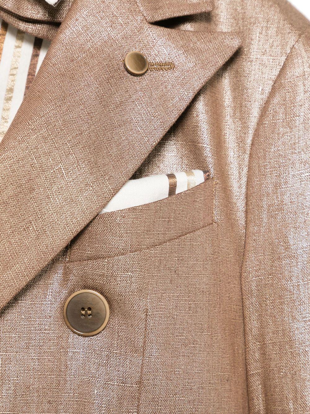 Il prodotto Completo tre pezzi per bambino Colorichiari marrone con chiusura doppiopetto è disponibile sullo store online RubinoKids.com. Realizzato in poliestere 100%, cotone 71%, nylon 26%, elastam 3%. Il prodotto presenta un colore castano, chiusura frontale con bottoni, polsini con abbottonatura, doppio spacco posteriore, tasca posteriore a filetto. Varie taglie a catalogo, appartiene alla collezione Colorichiari Primavera/Estate 2025 ed è disponibile in pronta spedizione con consegna in 24/48h per l'Italia.