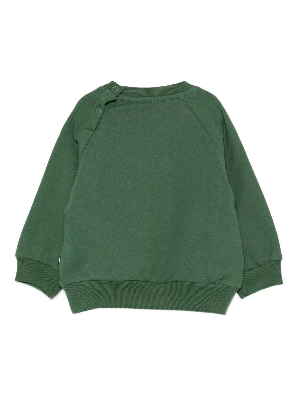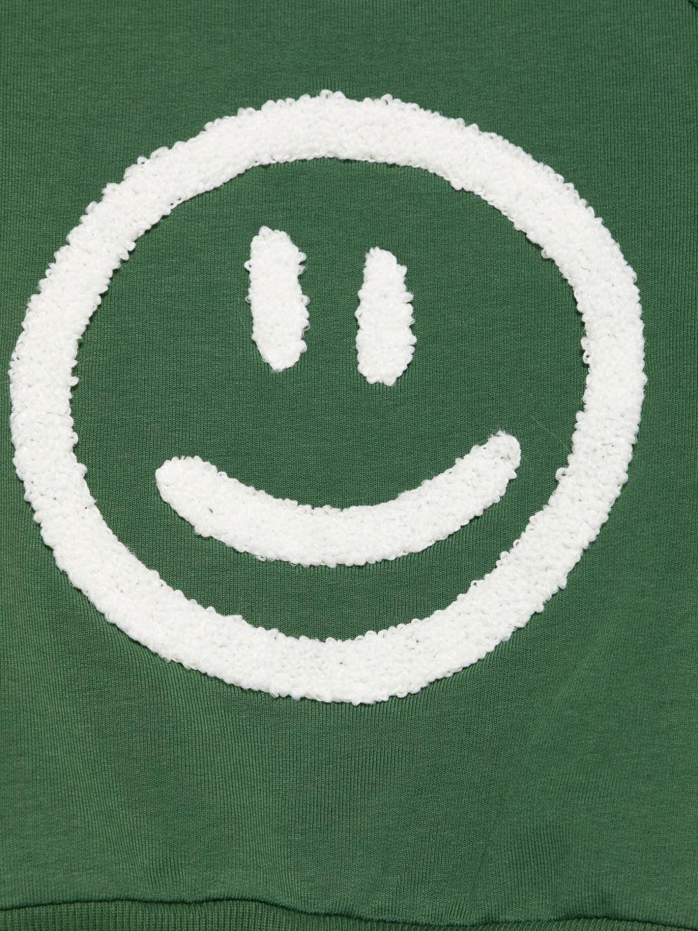Il prodotto Felpa per neonato Molo verde con motivo a stampa è disponibile sullo store online RubinoKids.com. Realizzato in cotone 100%. Il prodotto presenta un colore verde, stampa faccina sorridente, maniche lunghe, polsini a coste, orlo a coste, scollo rotondo. Varie taglie a catalogo, appartiene alla collezione Molo Autunno/ Inverno 2025 ed è disponibile con consegna in 24/48h per l'Italia.