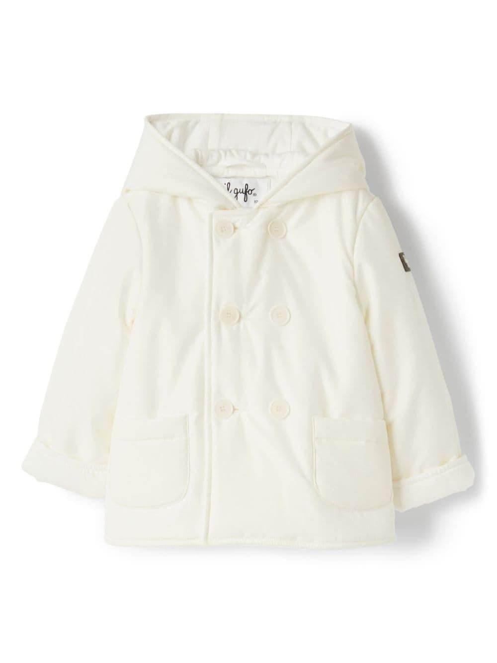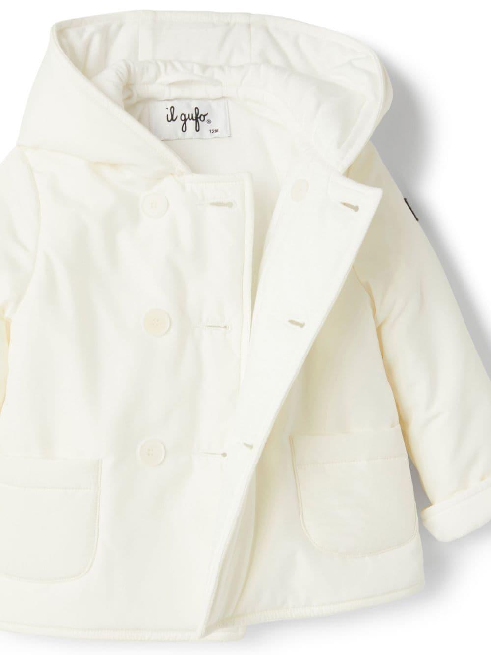 Piumino per neonato Il Gufo bianco doppiopetto con applicazione sulla manica