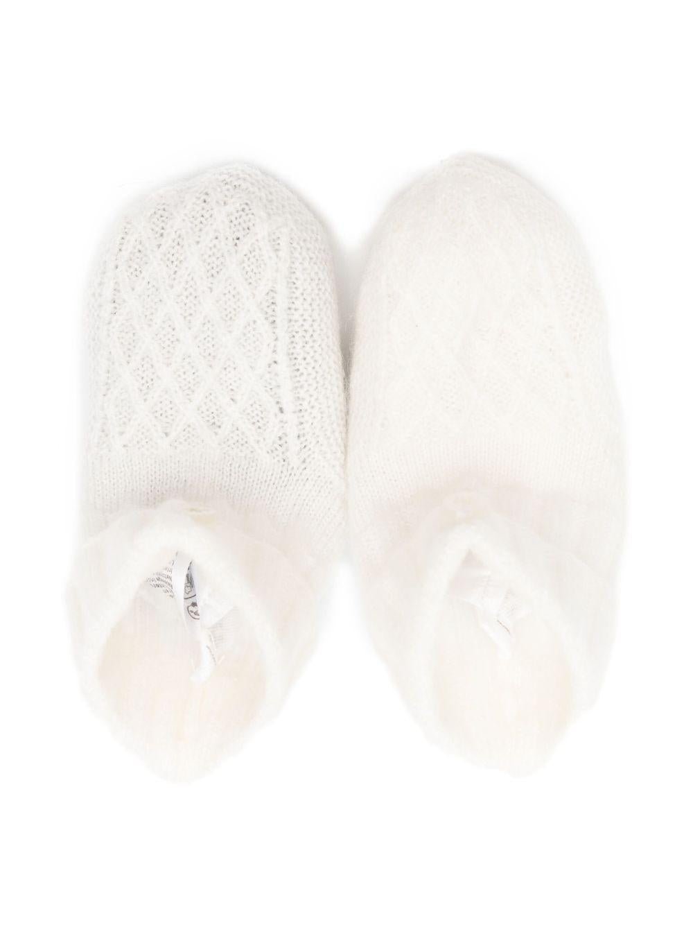 Il prodotto Scarpette prima passi per neonati Tartine Et Chocolat bianche con punta tonda è disponibile sullo store online RubinoKids.com. Realizzato in cashmere 100%. Il prodotto presenta un colore bianco, cashmere, maglia intrecciato, punta tonda. Varie taglie a catalogo, appartiene alla collezione Tartine Et Chocolat Autunno/Inverno 2025 ed è disponibile in pronta spedizione con consegna in 24/48h per l'Italia.