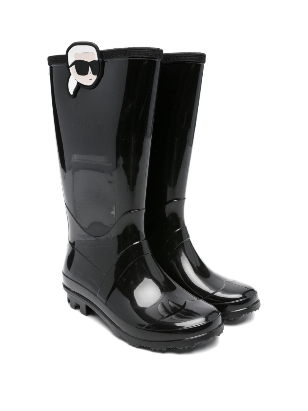 Stivali da pioggia per bambina Karl Lagerfeld Kids neri lucidi con logo