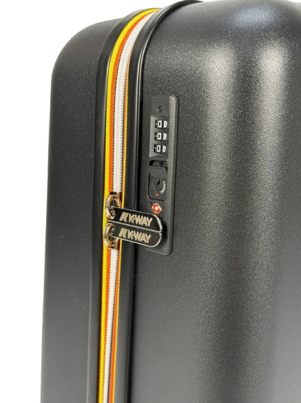 Il prodotto Trolley Eudoxie Logo per bambini K-Way Kids grigio con ruote girevoli è disponibile sullo store online RubinoKids.com. Realizzato in polycarbonato 100%. Il prodotto presenta un colore nero, bagaglio rigido da cabina, guscio in policarbonato, fodera in poliestere con logo stampato all-over, pannello divisorio rimovibile con inserti in rete, tasca piccola con zip, sacchetto biancheria con chiusura coulisse, quattro ruote girevoli a 360°, maniglia estensibile in alluminio, sistema di chiusura a combinazione con TSA, tag per etichetta bagaglio, monogramma K-Way in rilievo tono su tono. Appartiene alla collezione K-Way Kids Autunno/Inverno 2025 ed è disponibile con consegna in 24/48h per l'Italia.