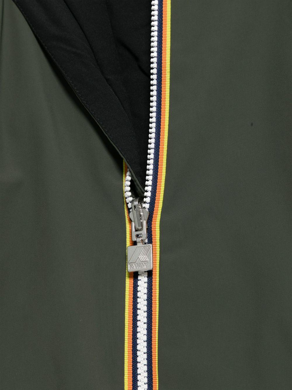 Il prodotto Giubbino Jack ST Warm per bambino K-Way Kids verde con design termico è disponibile sullo store online RubinoKids.com. Realizzato in poliuretano 100%, nylon 92%, spandex/elastam 8%. Il prodotto presenta un colore verde/nero, jersey tecnico, impermeabile, design termico, chiusura frontale con zip, design reversibile, cappuccio, maniche lunghe, orli elasticizzati, dettaglio con logo in gomma, due tasche laterali con zip, rifinitura con nastro a righe in gros grain. Varie taglie a catalogo, appartiene alla collezione K-Way Kids Autunno/ Inverno 2025 ed è disponibile con consegna in 24/48h per l'Italia.
