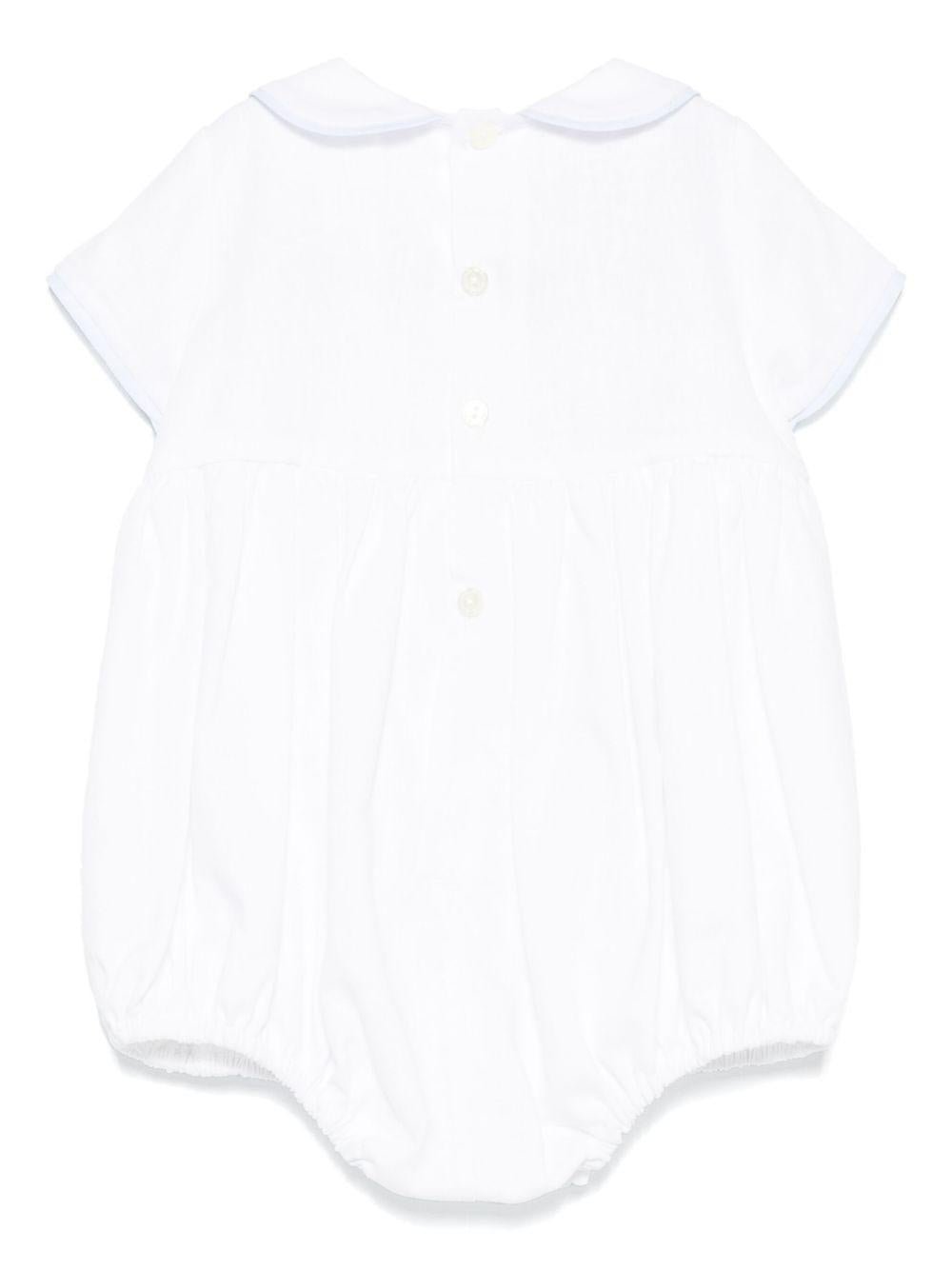Il prodotto Tutina per neonato La Stupenderia bianco con bordi a contrasto è disponibile sullo store online RubinoKids.com. Realizzato in lino 55%, cotone 45%. Il prodotto presenta un colore bianco, chiusura posteriore con bottone, chiusura con abbottonatura a pressione, colletto Peter Pan, maniche corte. Varie taglie a catalogo, appartiene alla collezione La Stupenderia Primavera/Estate 2025 ed è disponibile in pronta spedizione con consegna in 24/48h per l'Italia.