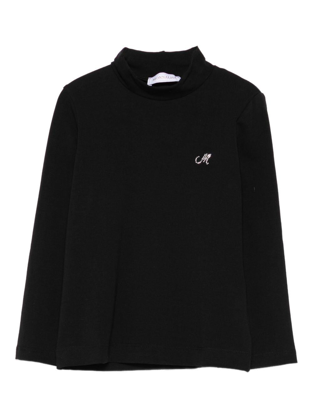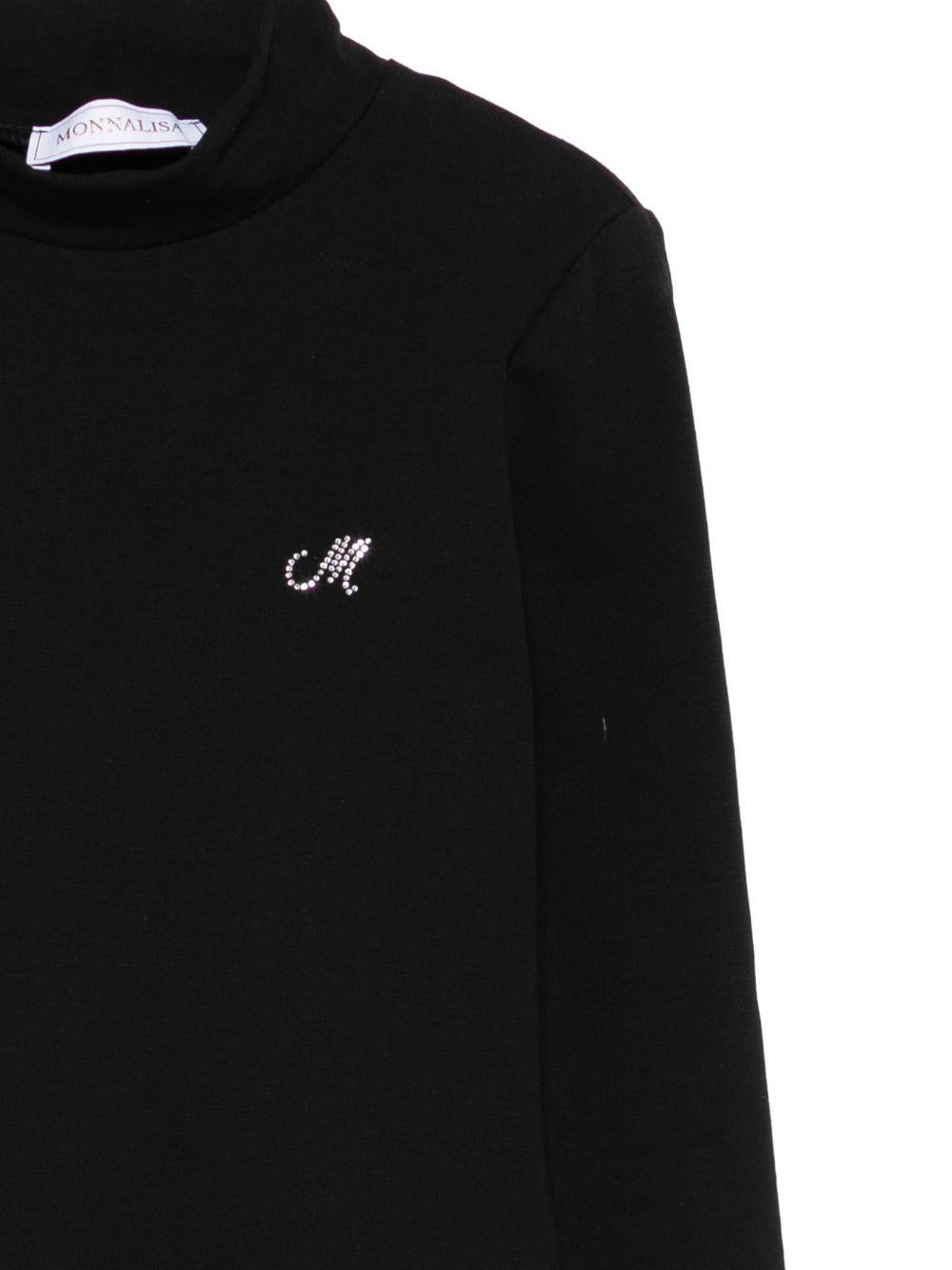 T-shirt per bambina Monnalisa nera con decorazioni in strass