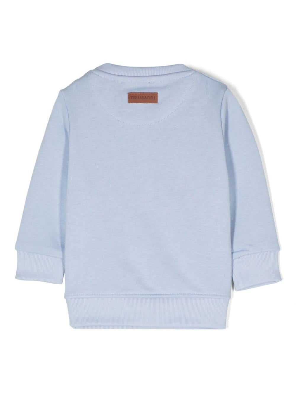 Il prodotto TRUSSARDI JUNIOR Felpa con stampa è disponibile sullo store online RubinoKids.com. Realizzato in Cotone 100%. La felpa presenta un colore blu pastello/blu di Prussia, cotone, trama jerseyl stampa con logo sul davanti, rifinitura a coste, girocollo, dettaglio effetto vernice, maniche lunghe, orlo e polsini a coste, tessuto in spugna, orlo dritto. Varie taglie a catalogo, appartiene alla collezione TRUSSARDI JUNIOR Autunno/Inverno 2024 ed è disponibile in pronta spedizione con consegna in 24/48h per l'Italia.