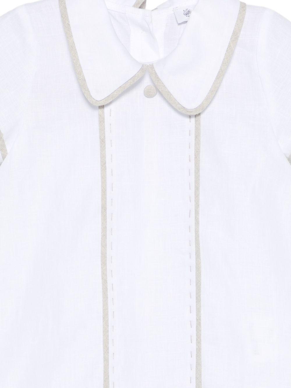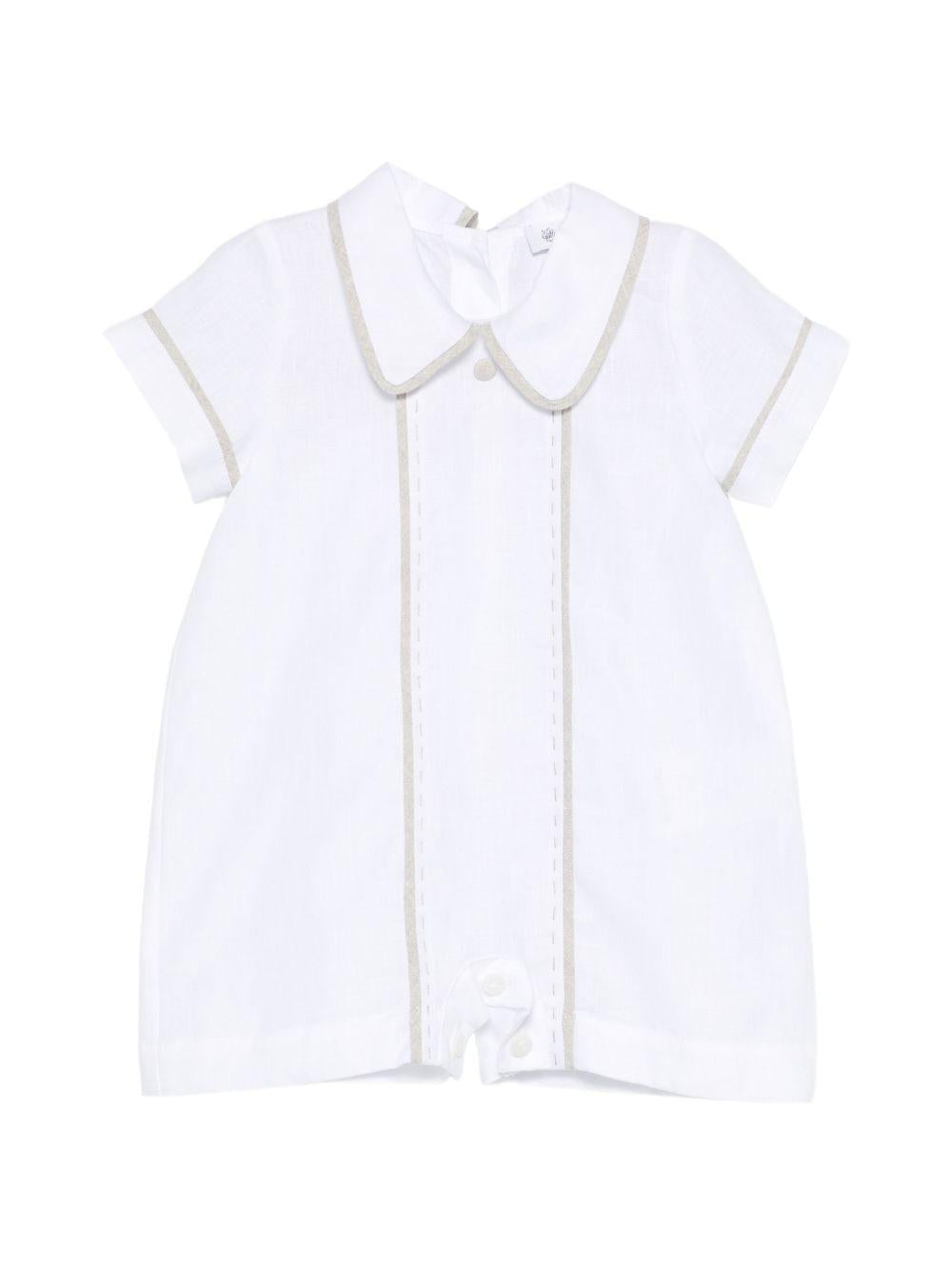 Il prodotto Tutina per neonato Jesurum Baby bianca con bordi a contrasto è disponibile sullo store online RubinoKids.com. Realizzato in lino 100%. Il prodotto presenta un colore bianco, maniche corte, bottoni a contrasto, colletto alla Peter Pan. Varie taglie a catalogo, appartiene alla collezione Jesurum Baby Primavera/Estate 2026 ed è disponibile con consegna in 24/48h per l'Italia.