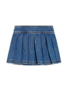Minigonna Medusa denim plissettata per bambina Versace Kids blu con chiusura con doppio bottone